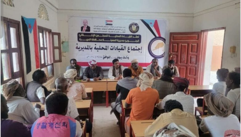عقدت القيادة المحلية للمجلس الانتقالي الجنوبي في مديرية المسيلة بمحافظة المهرة، اجتماعها الموسع الثالث من العام الجاري 2024م، برئاسة حسن عمر باعباد، رئيس الهيئة.