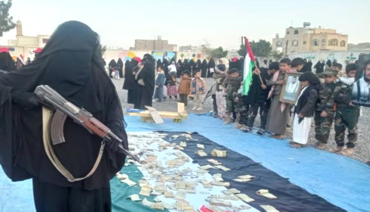 وأعلنت الجماعة الحوثية عبر وسائل إعلامها، أخيراً، عن جمع تبرعات عينية ومالية من النساء، خلال فعالية نظمتها الهيئة النسائية للجماعة في صنعاء، بقيمة تزيد على 97 ألف دولار (52 مليون ريال يمني، حيث تفرض الجماعة سعراً ثابتاً للدولار، يساوي 534 ريالاً).