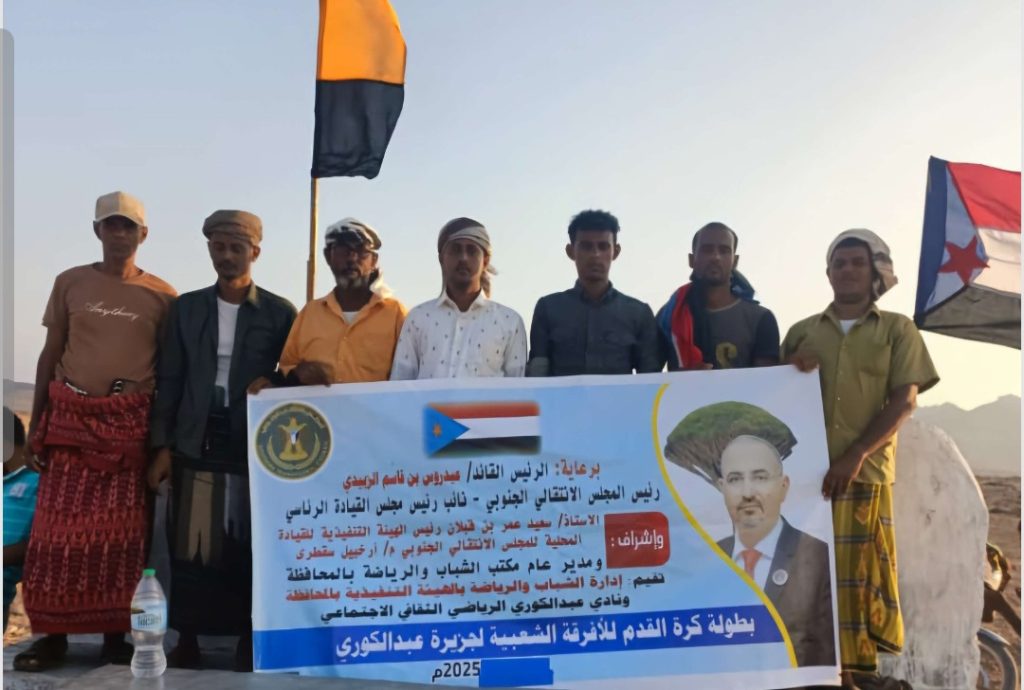 دشنت إدارة الشباب والرياضة بالهيئة التنفيذية للقيادة المحلية للمجلس الانتقالي الجنوبي في محافظة سقطرى، اليوم الخميس، بطولة كروية للفرق الشعبية بجزيرة عبدالكوري، تحت إشراف دائرة الشباب والرياضة بالأمانة العامة لهيئة رئاسة المجلس الانتقالي.