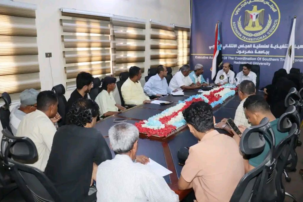 عقد رئيس الهيئة التنفيذية للقيادة المحلية للمجلس الانتقالي الجنوبي بمحافظة حضرموت، العميد الركن سعيد أحمد المحمدي، اليوم الأربعاء بمدينة المكلا، لقاءً تشاوريًا بالهيئة التنفيذية لمنسقية المجلس الانتقالي الجنوبي بجامعة حضرموت، بحضور الدكتور حسن الغلام العمودي، رئيس الهيئة، للتحضير والاستعداد لفعالية حضرموت أولًا الجماهيرية الكبرى التي ستقام في الـ ٢٤ من أبريل القادم بالمكلا.