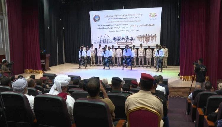 وأكد مدير عام مكتب وزارة الثقافة بساحل حضرموت عبير الحضرمي، خلال كلمة ألقتها في احتفال الذكرى التاسعة لتحرير ساحل حضرموت من الإرهاب، أن الثقافة والفن كانا في خط الدفاع في مواجهة أفكار التطرف، مشيرةً إلى أن دماء الشهداء طهَّرت الأرض وأسست لعهد جديد من الحرية والتنمية، موضحةً أن المثقفين والفنانين تعرضوا لملاحقاتٍ ومضايقات إبان سيطرة القاعدة على ساحل حضرموت، لكنهم لم ينكسروا فتحولت الكلمة واللوحة واللحن إلى مقاومات شعبية، ولم تكن معركة التحرير عسكريةً فحسب، بل كانت معركة وعي، منوَّهة بدعم التحالف العربي الذي أسهم في استعادة الهوية الحضرمية.