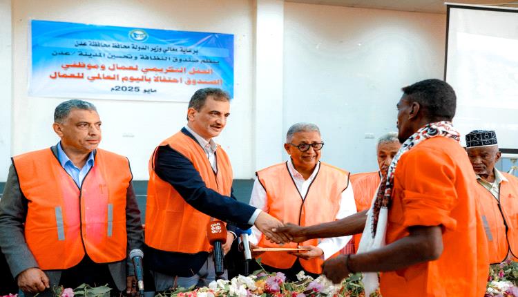 كرّم وزير الدولة، محافظ العاصمة عدن، الأستاذ أحمد حامد لملس، اليوم الأحد، عددًا من العمال المبرزين من منتسبي صندوق النظافة والتحسين، وذلك بمناسبة يوم العمال العالمي، تقديرًا لجهودهم في الحفاظ على نظافة وجمال المدينة.