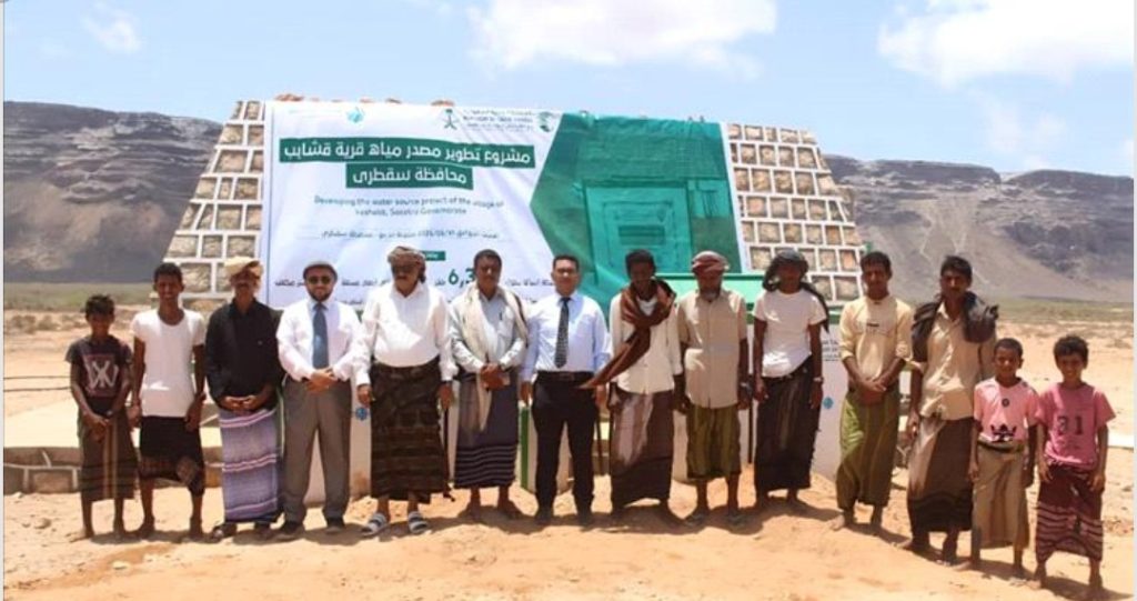دشنت مؤسسة طيبة للتنمية وبتمويل من مركز الملك سلمان للإغاثة والأعمال الإنسانية مشروع إنشاء خزان سطحي حجري وشبكة إسالة في قرية قشابب بمديرية حديبو بمحافظة سقطرى