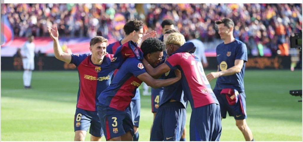 ويتربع “البارسا” على صدارة ترتيب الدوري الإسباني برصيد 82 نقطة جمعها من 35 مباراة، حقق خلالها الفوز في 26، تعادل في 4، وتلقى 5 هزائم، وسجل لاعبوه 95 هدفًا، واستقبلت شباكه 36.