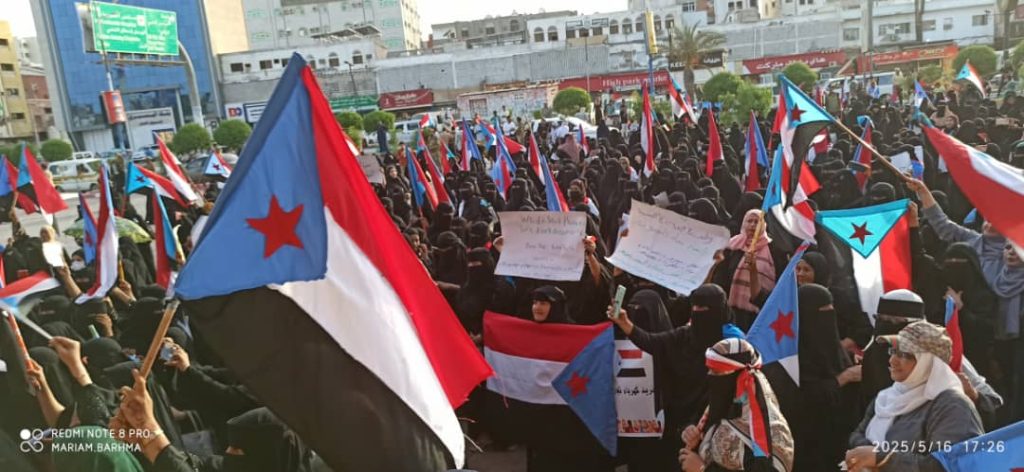 شهدت ساحة العروض بخور مكسر عصر الجمعة 16 مايو 2025، وقفة احتجاجية نسوية حاشدة شاركت فيها آلاف نساء الجنوب من مختلف مديريات العاصمة عدن، نظّمتها نساء الجنوب بالعاصمة عدن تحت شعار: “حقوقنا ومطالبنا تحت راية وطني وهويتي الجنوبية”، حيث عبّرت المشاركات عن استيائهن الشديد من تدهور الأوضاع المعيشية والخدمية، ورفعن لافتات تطالب بالخدمات الأساسية كالكهرباء والماء والصحة والتعليم، مؤكدات أن هذه الحقوق ليست منّة بل استحقاق إنساني ووطني.