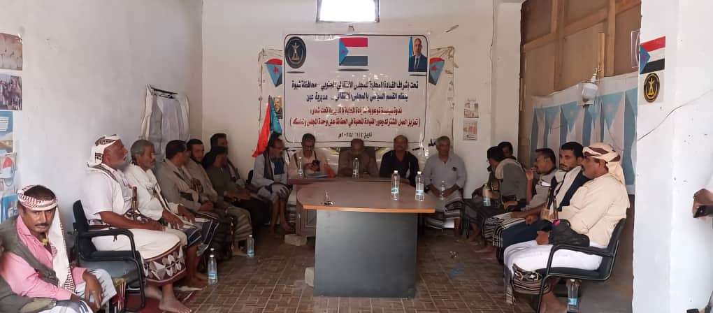 القمندان نيوز نظم القسم السياسي بالهيئة التنفيذية للقيادة المحلية للمجلس الانتقالي الجنوبي في مديرية عين بمحافظة شبوة، اليوم الاثنين، ندوة سياسية توعوية لأعضاء القيادة المحلية بالمديرية، تحت شعار: “تعزيز العمل المشترك ودور القيادة المحلية في الحفاظ على وحدة المجلس وتماسكه”.