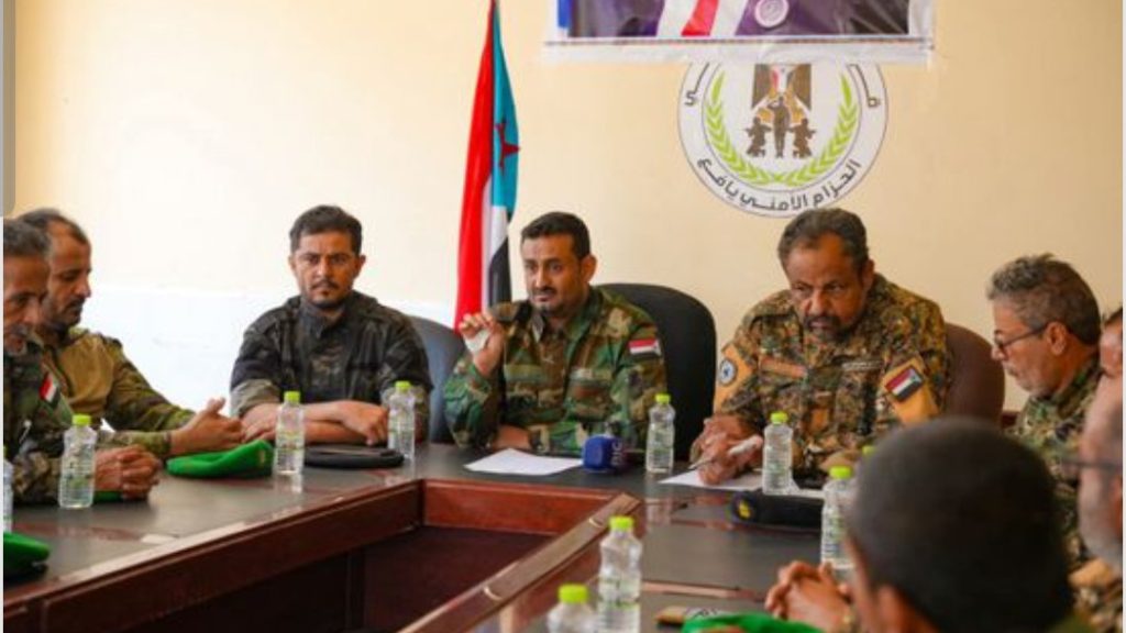 بحث المقدم ديان الشبحي، قائد قوات الحزام الأمني في يافع، اليوم الاثنين، مع قيادة الحزام الأمني من مدراء أمن مديريات يافع، التحديات التي تواجه العمل الأمني.