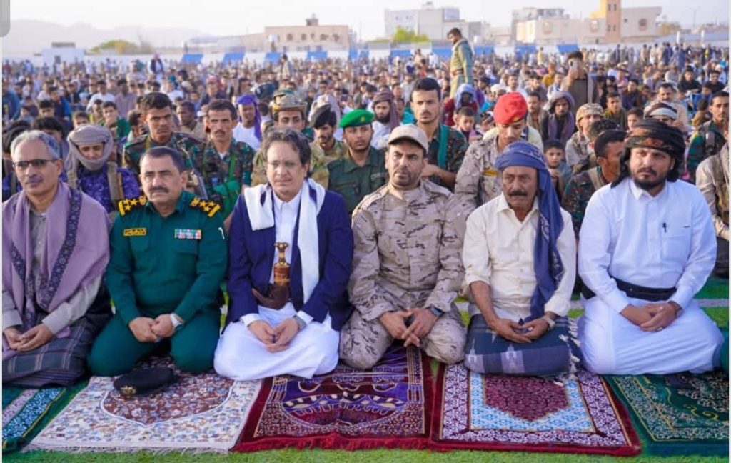 وعقب أداء الصلاة والاستماع إلى الخطبتين، تبادل رئيس تنفيذية انتقالي شبوة، التهاني والتبريكات مع جموع المصلين بعيد الأضحى المبارك سائلا الله العلي القدير بأن يعيد هذه المناسبة وقد تحققت أهداف الشعب الجنوبي باستعادة دولته.