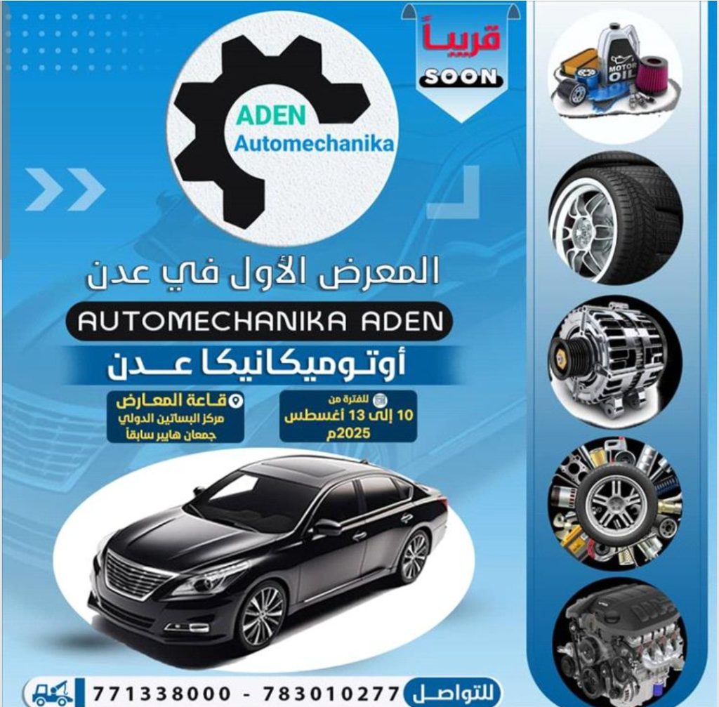 تستعد العاصمة عدن لاحتضان أول معرض من نوعه في اليمن تحت عنوان “أوتوميكانيكا – عدن AUTOMECHANiKA-ADEN”، والمتخصص في المركبات والمعدات ومستلزمات خدمات ما بعد البيع، وذلك خلال الفترة من 10 إلى 13 أغسطس 2025م في مركز البساتين الدولي للمعارض بمديرية دار سعد (جمعان هايبر سابقاً).