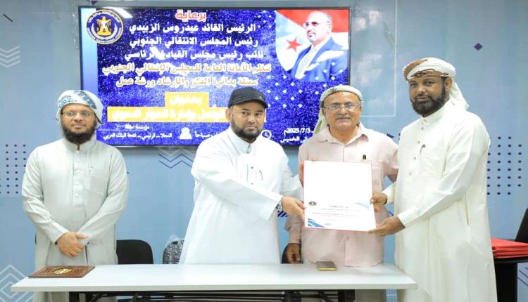 اختتمت دائرة الفكر والإرشاد في الأمانة العامة لهيئة رئاسة المجلس الانتقالي الجنوبي، اليوم الخميس، في العاصمة عدن، ورشة تدريبية في مهارات التواصل وإدارة الحوار الدعوي، استمرت على مدى أربعة أيام، بمشاركة عدد من أئمة وخطباء المساجد والدعاة والمرشدين.