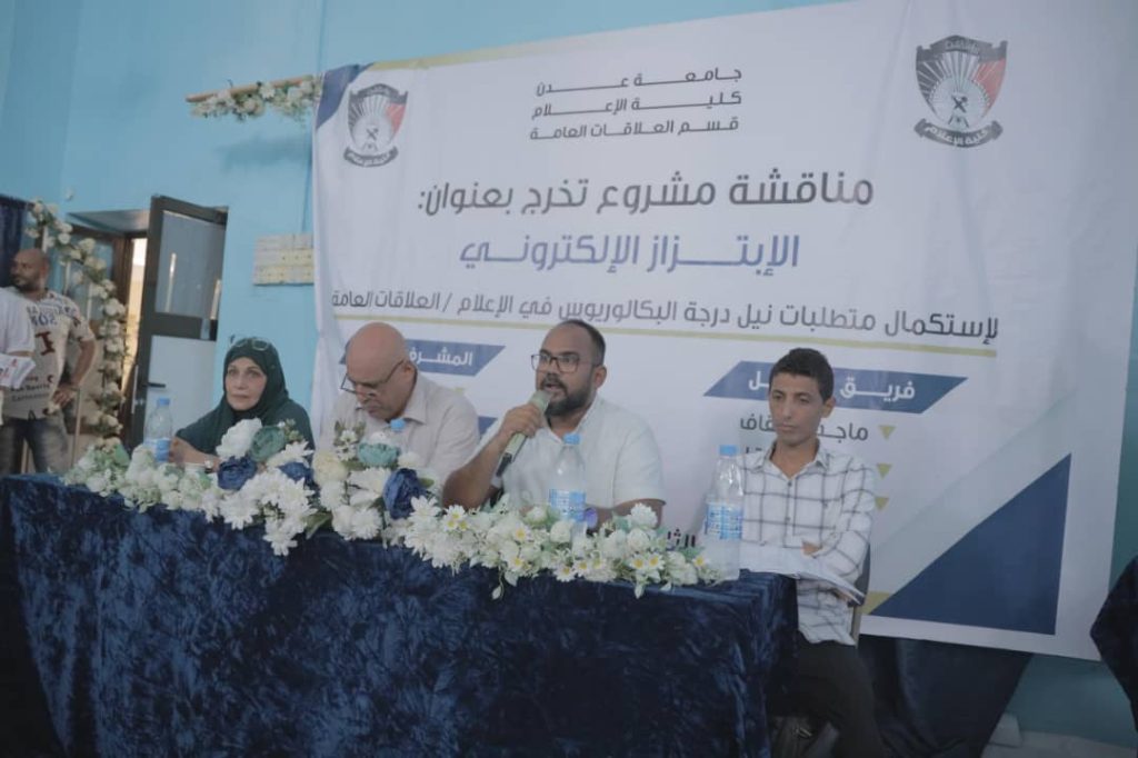 طلبة إعلام عدن يناقشون مشروع تخرج نوعي حول الابتزاز الإلكتروني وينالون الامتياز