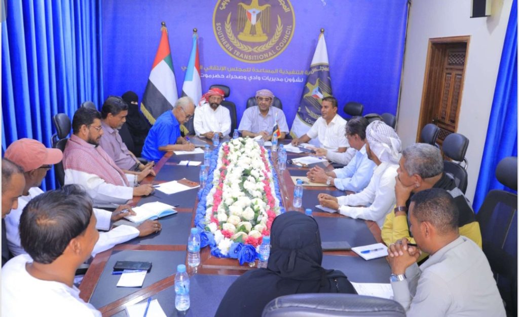 عقدت الهيئة التنفيذية المساعدة للمجلس الانتقالي الجنوبي لشؤون مديريات وادي وصحراء حضرموت، اليوم الأحد، اجتماعها الدوري الأول لشهر يوليو، برئاسة رئيس الهيئة، محمد عبدالملك الزبيدي.