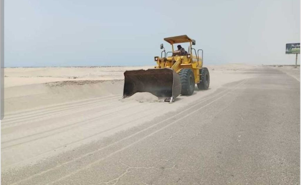 وتأتي هذه الحملة استجابة لحالة التكدس الكثيف للكثبان الرملية التي خلفتها الرياح خلال الأيام الماضية، والتي باتت تشكل خطرًا على سلامة المسافرين والمركبات، وتهدد بوقوع حوادث مرورية على الطريق الحيوي.