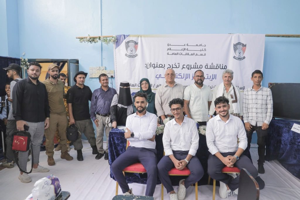 شهدت كلية الإعلام بجامعة عدن، صباح يوم الثلاثاء 8 يوليو 2025م، مناقشة مشروع تخرج طلاب البكالوريوس في قسم العلاقات العامة، الموسوم بـ “الابتزاز الإلكتروني”، والمقدَّم من الطلبة: ماجد محمد علوي السقاف، وأصيل محمد عبدالله ثابت السيد، ويوسف عبده أحمد العاقل، وذلك بحضور أكاديمي وأمني وإعلامي بارز.