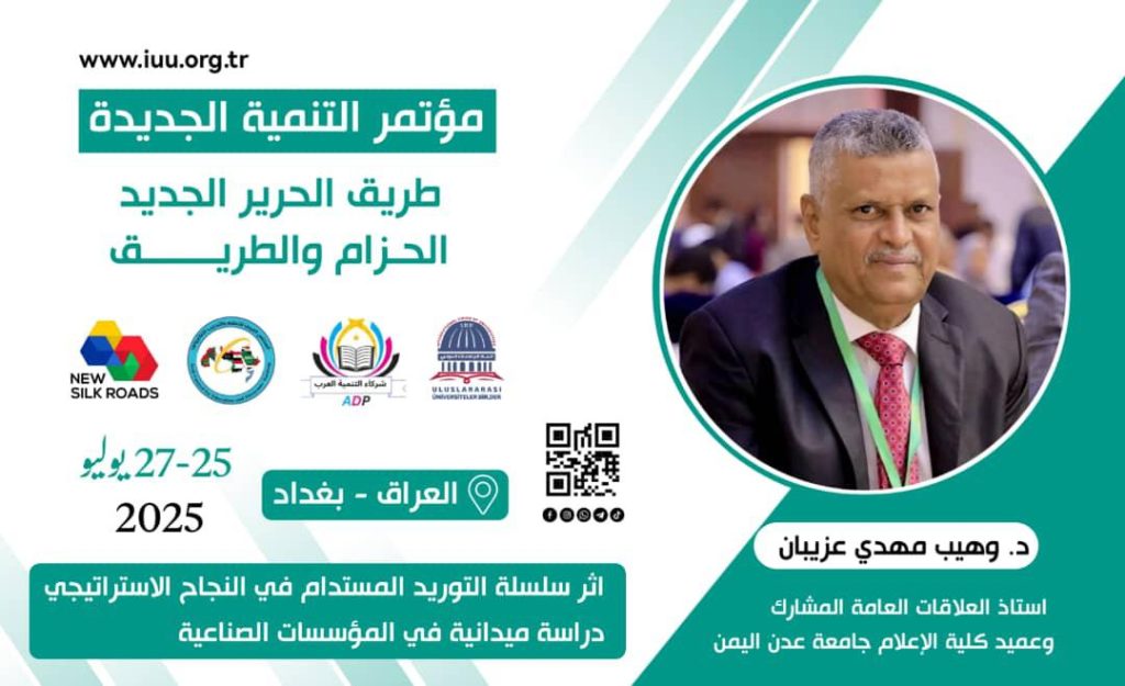 في مشهد يُجسد الحضور العلمي الجنوبي المتنامي في الساحات الأكاديمية العربية والدولية، شارك الدكتور وهيب مهدي عزيبان، عميد كلية الإعلام بجامعة عدن وأستاذ العلاقات العامة المشارك، في مؤتمر “طريق الحرير الجديد – الحزام والطريق”، الذي احتضنته العاصمة العراقية بغداد خلال الفترة من 25 إلى 27 يوليو 2025م، بمشاركة واسعة من الباحثين والخبراء وصناع القرار من مختلف دول المنطقة.