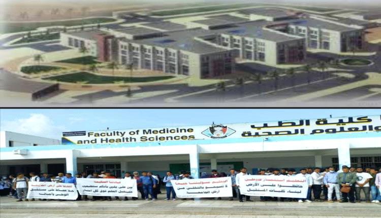 فالمشروع الذي بدأت فكرته بأوامر رئاسية من الرئيس السابق صالح عام ٢٠٠٦م وتم اتخاذ كل الإجراءات الفنية والهندسية الإدارية والمالية، سواء بتجهيز التصميم الهندسي الذي انجز فعلا منذ ذلك العام، وكذا استكمال إجراءات الصرف والتمليك من قبل مصلحة أراضي وعقارات الدولة( كان آخرها توجيهات رئيس الحكومة السابق بن مبارك قبل اشهر)، أو من حيث اعتماد مبلغ التنفيذ ١٠٠ مليون دولار من الصندوق العربي للتنمية المستدامة (الكويت) وإجراء المناقصة، وغيرها من الإجراءات. ومع ذلك ثمة تراخٍ واضح من قبل الجهات المعنية بالجامعة و في غير الجامعة ونعني السلطات القائمة لإنجاز هذا المشروع العملاق، برغم ما يقابل ذلك من نضال مستميت يقوم به كثير من طاقم هيئة التدريس وبعض العمداء السابقين والحاليين بعدة أشكال النضال والمتابعة كان آخرها وقفة احتجاجية أمام الموقع شارك فيها عدد كبير من الأساتذة والمواطنين والطلاب. هؤلاء الأستاذة الذين بعضهم لم يعد لهم ارتباطا مباشرا بالجامعة بعد تقاعد معظمهم، وهذا يدل على حرصهم الوطني وغيرتهم على عدن واهلها وسمعتها و ينفي المزاعم التي تزعم ان هذه الجهود تقف خلفها مصالح شخصية نفيعغة ،فهؤلاء المعتصمون الذين بلغ بعضهم عمرا عتيا أطلقوا صرختهم المدوية بوجه المتقاعسين بالجامعة و بوجه من يحاول إجهاض المشروع والتآمر عليه والسمسرة بموقعه، تارة يزعم ان الموقع قد تم اعتماده ليكون قاعات امتحانات وتارة أخرى بأنه سيكون موقف سيارات للحديقة !!.. وهذا التوجه في نظرنا فضيحة كبرى تتجلى خلفها نوايا سيئة ،بل ان ثمة مساعٍ مريبة تعمل على نقل المشروع إلى منطقة بعيدة عن كليات كلية الطب، ربما إلى هناك في قلب الصحراء خلف مدينة الشعب، ما يعني ذلك ان تم لا قدر الله جريمة بحق عدن وبحق الطلاب والمدرسين الذين سيكون عليه تحمل عناء ومشقة و كلفة أموال المواصلات بين كلياتهم في خورمكسر وبين مدينة الشعب.