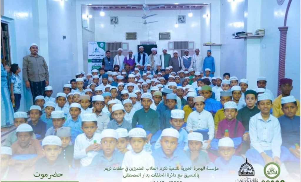 ضمن الحملة الربيعية الثانية عشر تحت شعار ( على نهجك يا رسول الله) قامت مؤسسة الهجرة الخيرية للتنمية وبالتنسيق مع منتدى إلى المعالي وبالترتيب مع دائرة الحلقات بدار المصطفى بتريم ، يوم الأحد ١٠ أغسطس ٢٠٢٥ م – الموافق ١٥ صفر ١٤٤٧ ه بتكريم أكثر من ٤٠٠ طالب من الطلاب المتميزين الملتحقين بحلقات مساجد مدينة تريم .