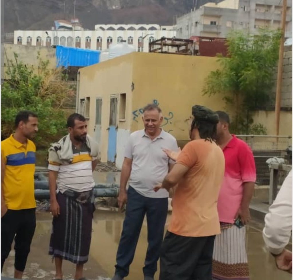 تفقد الاستاذ عبدالرحيم جاوي مدير عام مديرية المعلا عمل المضخة المركزية للصرف الصحي والخاصة بشفط مياه الصرف ومياه الأمطار من شوارع المديرية واجزاء من مديرية التواهي .