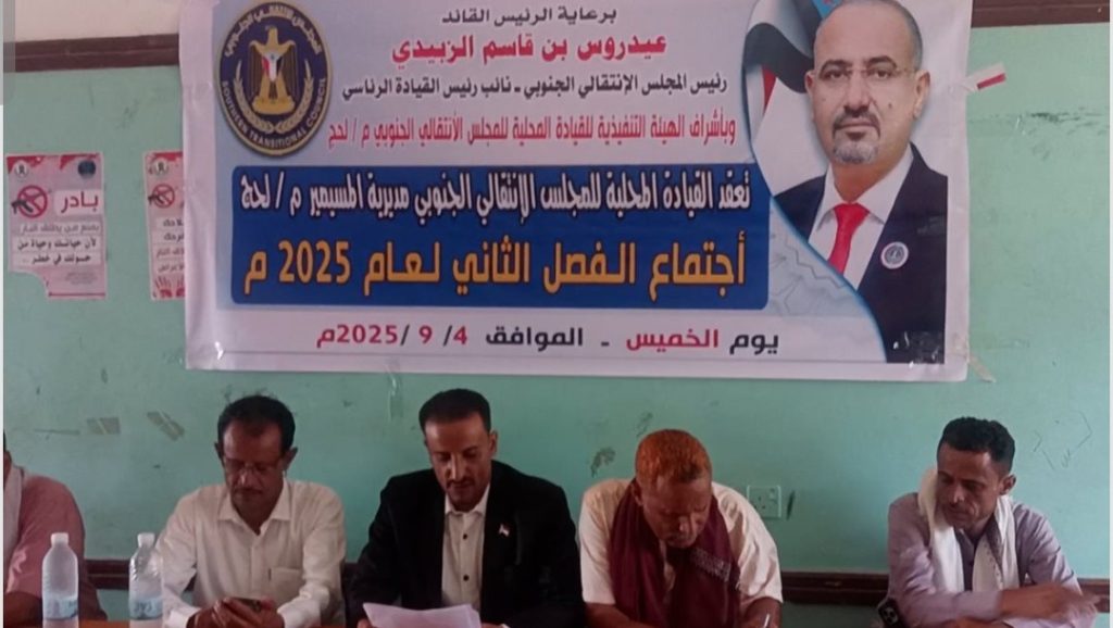 عقدت القيادة المحلية للمجلس الانتقالي الجنوبي في مديرية المسيمير بمحافظة لحج، أمس الخميس، اجتماعها الموسع للفصل الثاني من العام الجاري 2025، برئاسة رئيس الهيئة، عبدالفتاح جمال الحوشبي.