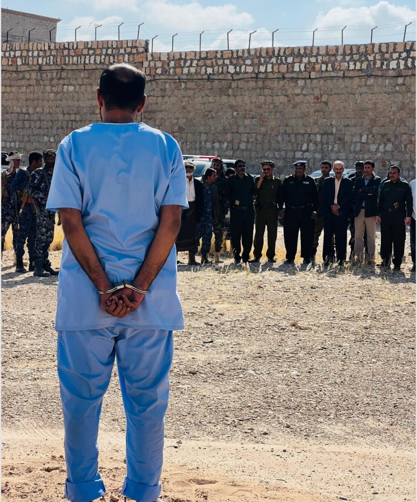 وتم التنفيذ بحضور رئيس نيابة إستئناف محافظة شبوة القاضي الدكتور صالح احمد المدحجي، وعدداً من القضاة، وضباط الشرطة، وإولياء الدم.