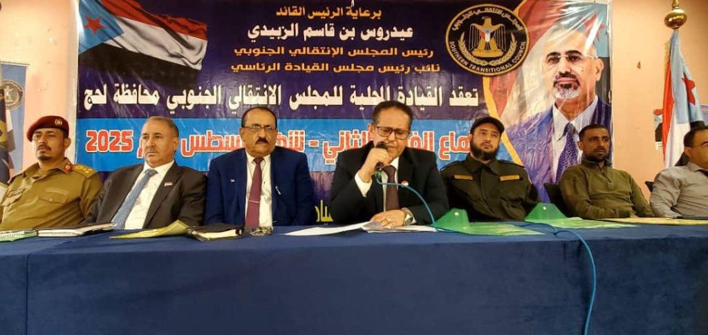 عقدت القيادة المحلية للمجلس الانتقالي الجنوبي بمحافظة لحج، اجتماعها الفصلي الثاني للعام 2025م، برئاسة الأستاذ وضاح نصر عبيد الحالمي، رئيس القيادة المحلية، وبحضور فريق التوجيه والرقابة الرئاسي برئاسة الأستاذ أحمد الربيزي نائب رئيس مجلس المستشارين، والأستاذ عوض بن عوض الصلاحي نائب المحافظ ، إلى جانب عدد من القيادات المدنية والعسكرية والأمنية في المحافظة.