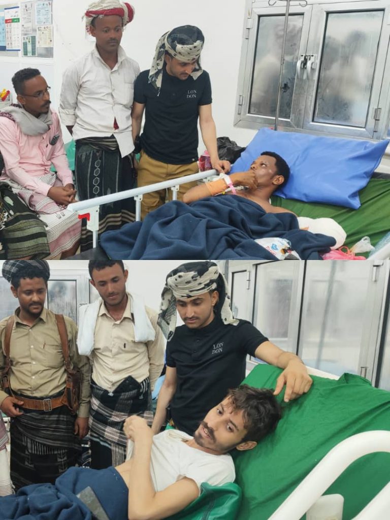 مشيراً الى ان ابناء الحواشب لايزالون يقدمون التضحيات ، حيث اصيب خلال شهر واحد فقط كل من البطل علي فؤاد الذي خ ساقاه، والبطل رضوان حموده الذي بُترت يده