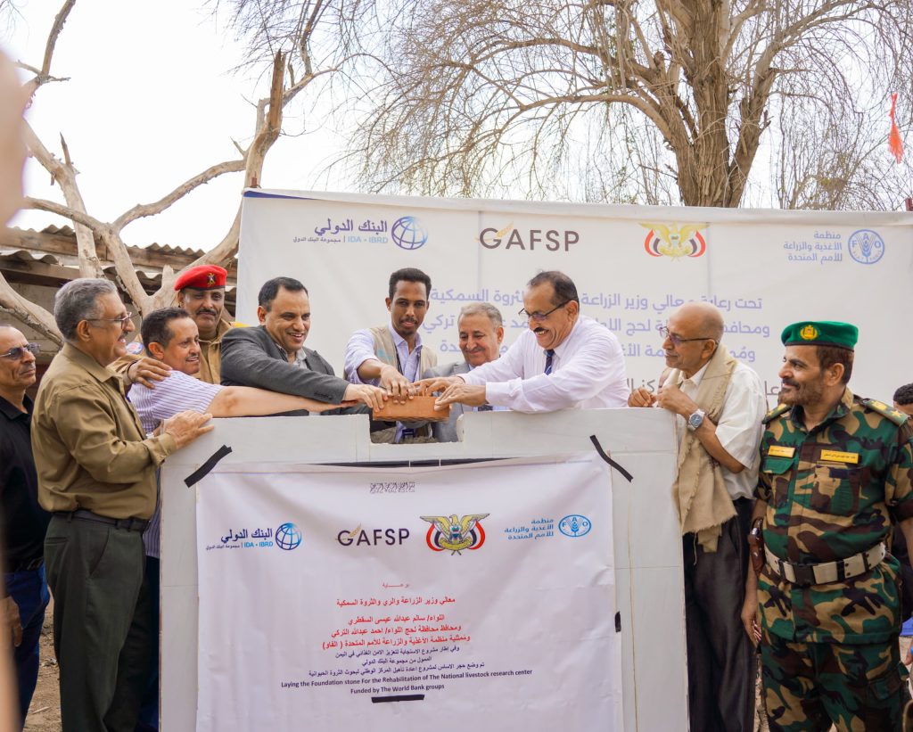 قام معالي وزير الزراعة والري والثروة السمكية، اللواء سالم السقطري، بمعية مدير مكتب منظمة الأغذية والزراعة للامم المتحدة، دكتور علي جالول، بوضع حجر الأساس لتدشين مشروع إعادة تأهيل المركز الوطني لبحوث الثروة الحيوانية بمحافظة لحج، تنفذه منظمة “الفاو”، تحت مشروع الاستجابة لتعزيز الأمن الغذائي والقدرة على الصمود في اليمن، بتمويل من مجموعة البنك الدولي بمبلغ 600 ألف دولار أمريكي.