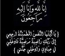 مبتهلاً إلى الله العلي القدير ان يتغمدها بواسع رحمته وغفرانه وان يجعل مأوها جناته العلى ويلهمهم جميل الصبر والسلوان انه على ذلك لقدير. إنا لله وإنا إليه راجعون