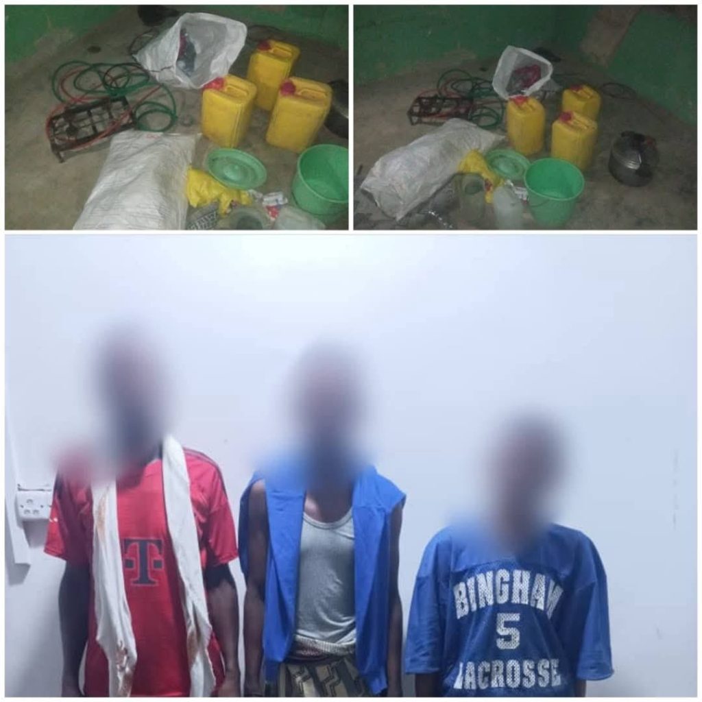 تمكّنت الأجهزة الأمنية في إدارة مكافحة المخدرات بمحافظة المهرة، اليوم، من ضبط عصابة تدير مصنعًا لتصنيع وبيع وترويج الخمور في أحد ضواحي مديرية الغيضة.وأوضح مصدر أمني أن عملية الضبط جاءت عقب تحرٍّ ومتابعة دقيقة للموقع، أسفرت عن مداهمته والقبض على ثلاثة أشخاص من أصحاب السوابق الإجرامية، وضبط كمية تقدر بنحو (60 لترًا) من مادة الخمر كانت مخزّنة في عبوات بلاستيكية جاهزة للبيع، بالإضافة إلى الأدوات والمعدات المستخدمة في عملية التصنيع.وأشار المصدر إلى أنه تم تحرير محضر رسمي وتحريز المضبوطات، وإيداع المتهمين الحجز لاستكمال الإجراءات القانونية تمهيدًا لإحالتهم إلى الجهات المختصة.وأكدت إدارة مكافحة المخدرات استمرار حملاتها الميدانية لملاحقة كل من يحاول العبث بأمن واستقرار المحافظة.
