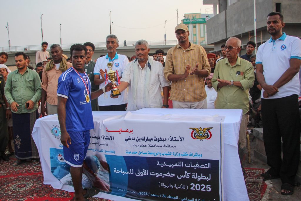 استحوذ بطل السباحة في حضرموت عمر سعيد باهرب من نادي تضامن حضرموت على لقب بطل تصفيات بطولة كأس حضرموت للسباحة في نسختها الأولى بزمن 02:33 د وحل منافسه الواعد علي خالد بخيت من نادي المكلا في المركز الثاني بكأس الوصافة بزمن وقدره 02:35 د محققين ارقام جيدة في مسافة أكثر من مائة متر.جاء ذلك خلال مشاركتهم في البطولة التي شهدتها مياه بحر خور المكلا ونظمها الاتحاد اليمني للسباحة والالعاب المائية فرع ساحل حضرموت ضمن الفعاليات الرياضية المصاحبة لكأس حضرموت التي تجمع في نهائياتها ابطال الساحل والوادي برعاية معالي وزير الشباب والرياضة الاستاذ/ نائف صالح البكري ومحافظ حضرموت الاستاذ/ مبخوت مبارك بن ماضي وإشراف مكتب وزارة الشباب والرياضة بالساحل.وانطلق السباق بحضور الأستاذ/ ياسر وبامحيسون مدير الشباب والرياضة بمديرية المكلا ورئيس اتحاد اللعبة الكابتن/ فوزي القمزني ورئيس اتحاد الإعلام الرياضي بالساحل الأستاذ/ فادي حقان ورئيس إتحاد كرة السلة الأستاذ/ ابراهيم باحشوان وممثلين عن الاندية ، حيث جرى تجهيز المتسابقين من الأندية والهواة ووسط حضور جماهيري تواجد على ضفاف الخور يترقب ويتابع تفاصيل أحداث البطولة.