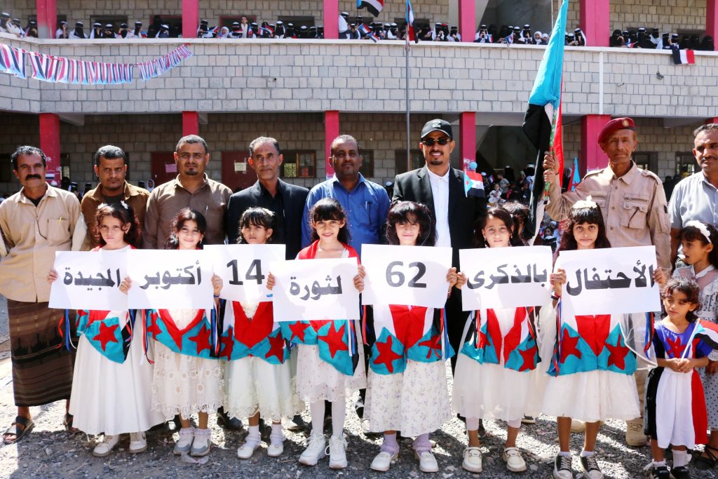 نظمت مدرسة الزهراء للبنات في ردفان بمحافظة لحج اليوم حفلاً خطابيًا وفنياً بمناسبة الذكرى الـ 62 لثورة 14 أكتوبر المجيدة التي انطلقت شرارتها من قمم جبال ردفان بقيادة الشهيد راجح بن غالب لبوزة .