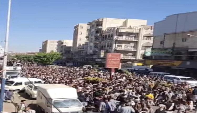 استقبلت الحشود جثمان الراحل فور وصوله إلى صنعاء، ثم تجمعت في اليوم التالي في مسجد عمر بن الخطاب بحي مسيك شرقي صنعاء الذي اكتظ بالمشيعين قبل أن يُحمل النعش على الأكتاف في مسيرة مشي طويلة حتى موقع الدفن.