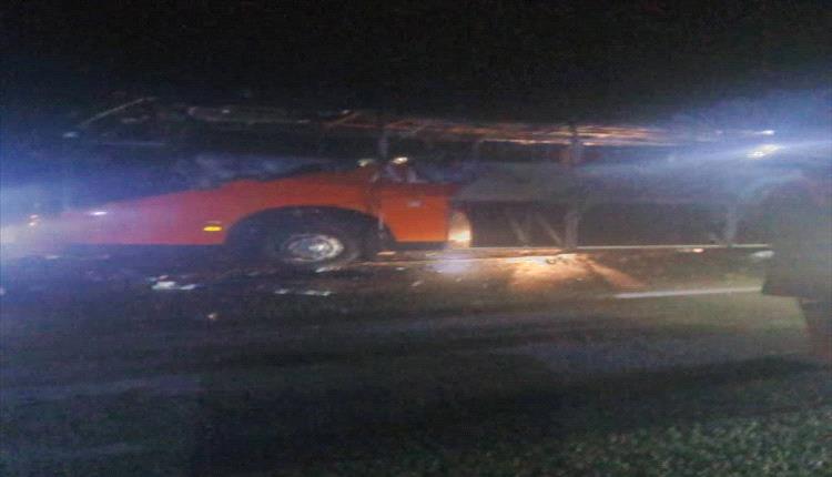 تفاصيل احتراق باص نقل جماعي في أبين