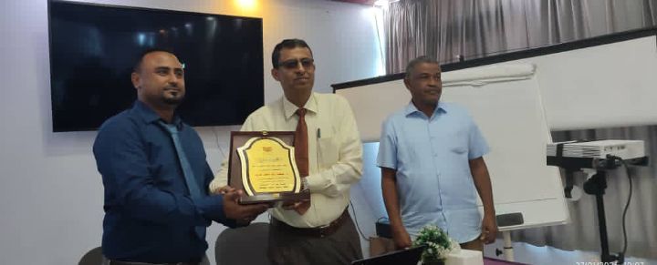 قدمت قيادة مكتب الصحة العامة والسكان بمحافظة لحج صباح اليوم درع المحافظة المقدم من مكتب الصحة بالمحافظة تقديرا لجهودها ودعمها لمشاريع القطاع الصحي وتدخلتها في مديريات المحافظة المستهدفة حيث قام الدكتور خالد جابر مدير عام مكتب الصحة بلحج تسليم درع مكتب الصحة بلحج لمنظمة رعاية الاطفال للدكتور حمزة ضابط المشاريع في منظمة رعاية الاطفال نظير الجهود التي قدمتها المنظمة واكد الدكتور جابر بان تلك البصمات ستظل في ذاكرة ابناء محافظة لحج مؤكدا بان الخدمات الصحية الاولية والتكاملية لكل البرامج سوف تبقى ليس برحيل اي منظمة او انتهى فترة عملها مؤكدا بان التعاون مستمرا ليس من اجل الحوافز المقدمة او الدعم المقدم من ادوية ومستلزمات من قبل اي جهة مانحة او منظمة في تدخلتها للقطاع الصحي في محافظة لحج ومديريتها المستهدفة. مؤكدا بان التعاون سيبقى لاجل تحسين نوعية الخدمات المقدمة من قبل كل المنظمات حيث كانت المتظمة قد استهدفت مديريات الملاح والمقاطرة ومديرية تبن