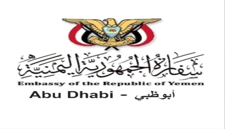 تهيب سفارة الجمهورية اليمنية لدى دولة الإمارات العربية المتحدة بجميع المواطنين اليمنيين من مقيمين وزوار، وفي ضوء التطورات الإقليمية الراهنة وما تتعرض له دولة الإمارات العربية المتحدة من اعتداءات سافرة من قبل النظام الإيراني، بضرورة الالتزام التام بالتعليمات الصادرة عن الجهات المختصة في دولة الإمارات العربية المتحدة، والتحلي بأقصى درجات الحيطة والحذر حفاظاً على سلامتهم وأمنهم.
