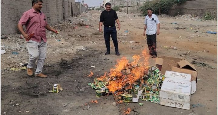 اتلف قسم صحة البيئة بمكتب الأشغال العامة والطرق بمديرية المنصورة في العاصمة عدن، أكثر من “200” باكت من شمة الحوت المحضور.