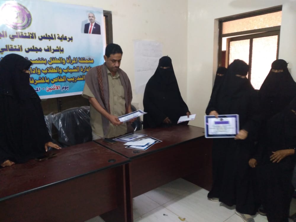 اختتمت بمديريه الحوطة بمحافظة لحج الدورة التدريبية الخاصة بالاسعافات الاولية والتي نظمتها ادارة المراة والطفل بالمجلس الانتقالي الجنوبي بمديرية الحوطة وبالتنسيق مع مكتب التربية الحوطة وادارة الصحة المدرسية وادارة الشباب والطلاب والادارة الاجتماعية بانتقالي الحوطة والذي شارك فيها نحو عشرين متدرب ومتدربة من معلمي مدارس الحوطة والذي استمرت لمدة يومين.